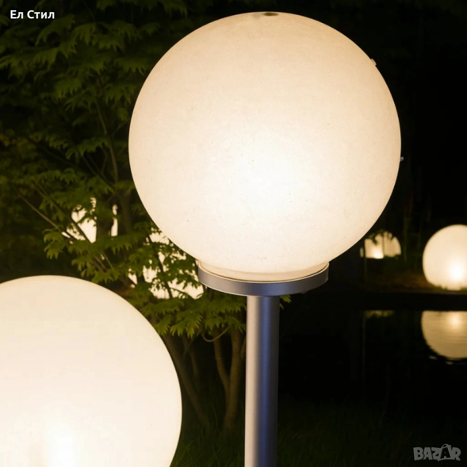 Соларна градинска лампа сфера BONETTI Ø30 см – автоматично осветление без кабели и сметки за ток