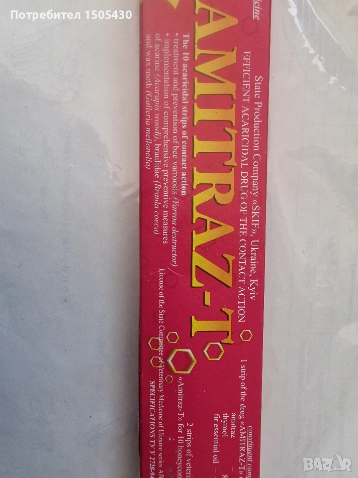 амитраз-т(бипин) на ленти, снимка 1 - За пчели - 53589549 амитраз-т(бипин) на ленти, снимка 2 - За пчели - 53589549 амитраз-т(бипин) на ленти, снимка 3 - За пчели - 53589549 амитраз-т(бипин) на ленти, снимка 4 - За пчели - 53589549 1/4