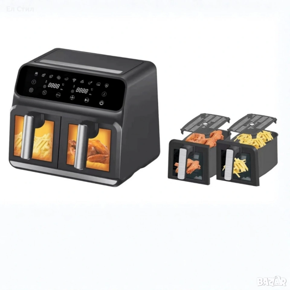 Двоен фритюрник Air Fryer, работещ без олио, 8L,