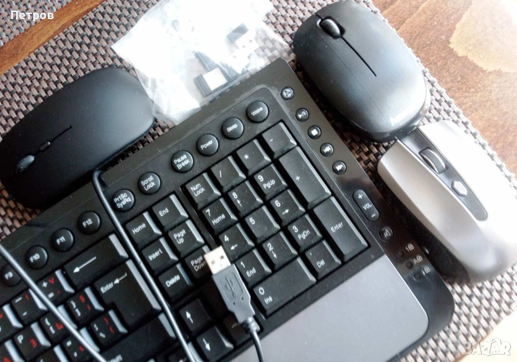 Трите мишки /едната е уайърлес и с батерии вътре/ са бонус към клавиатурата.