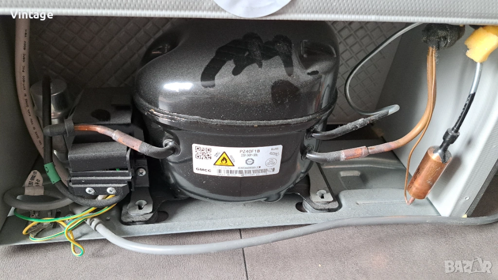 Копресора работи, охлаждащия агент е наличен. Проблемът е, че в фризера има малка дупка и изпуска циклопентан когато се включи към ел. мрежа.