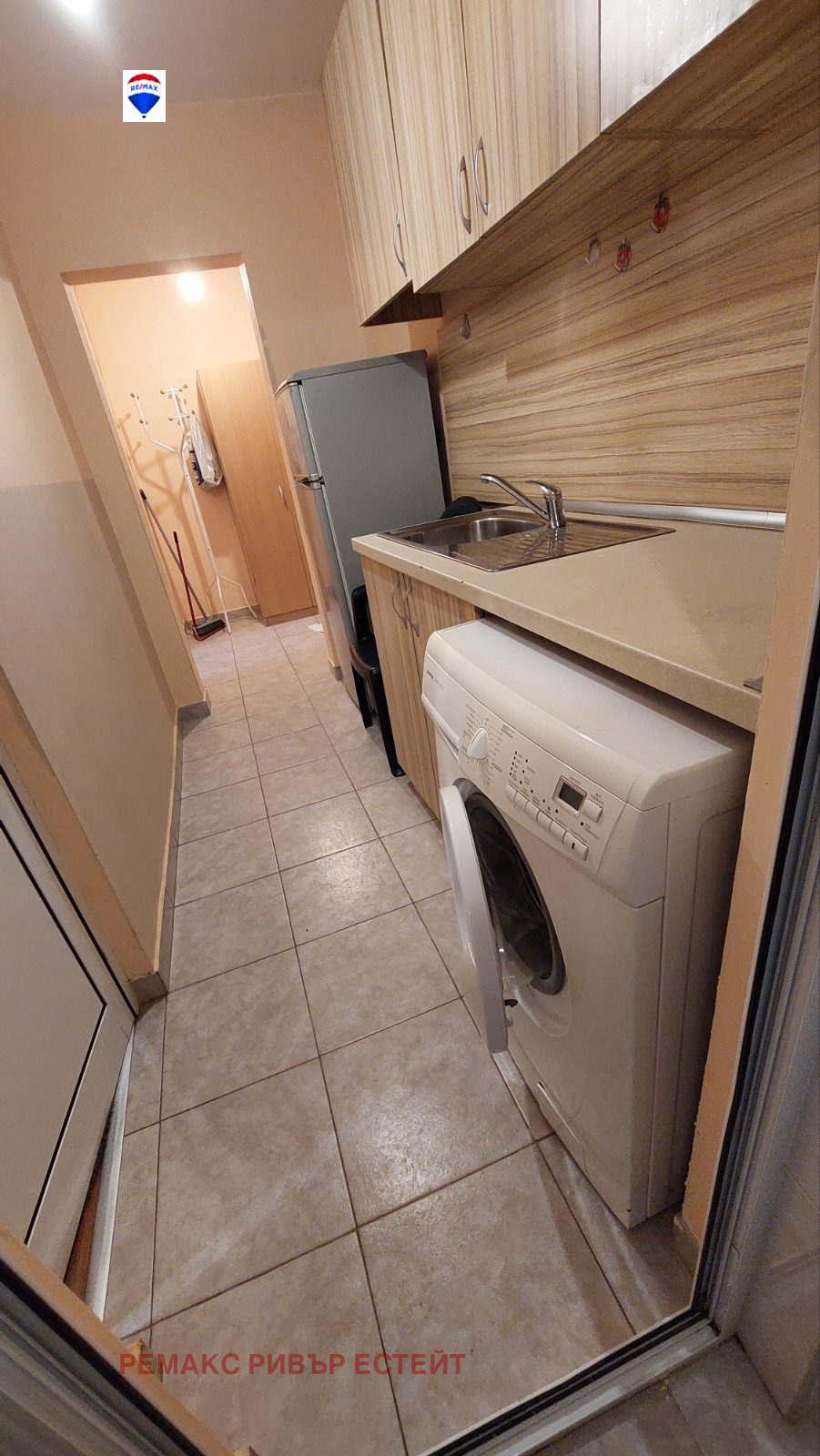 - кухненски тракт, състоящ се от кухненски шкафове с мивка, пералня и хладилник;