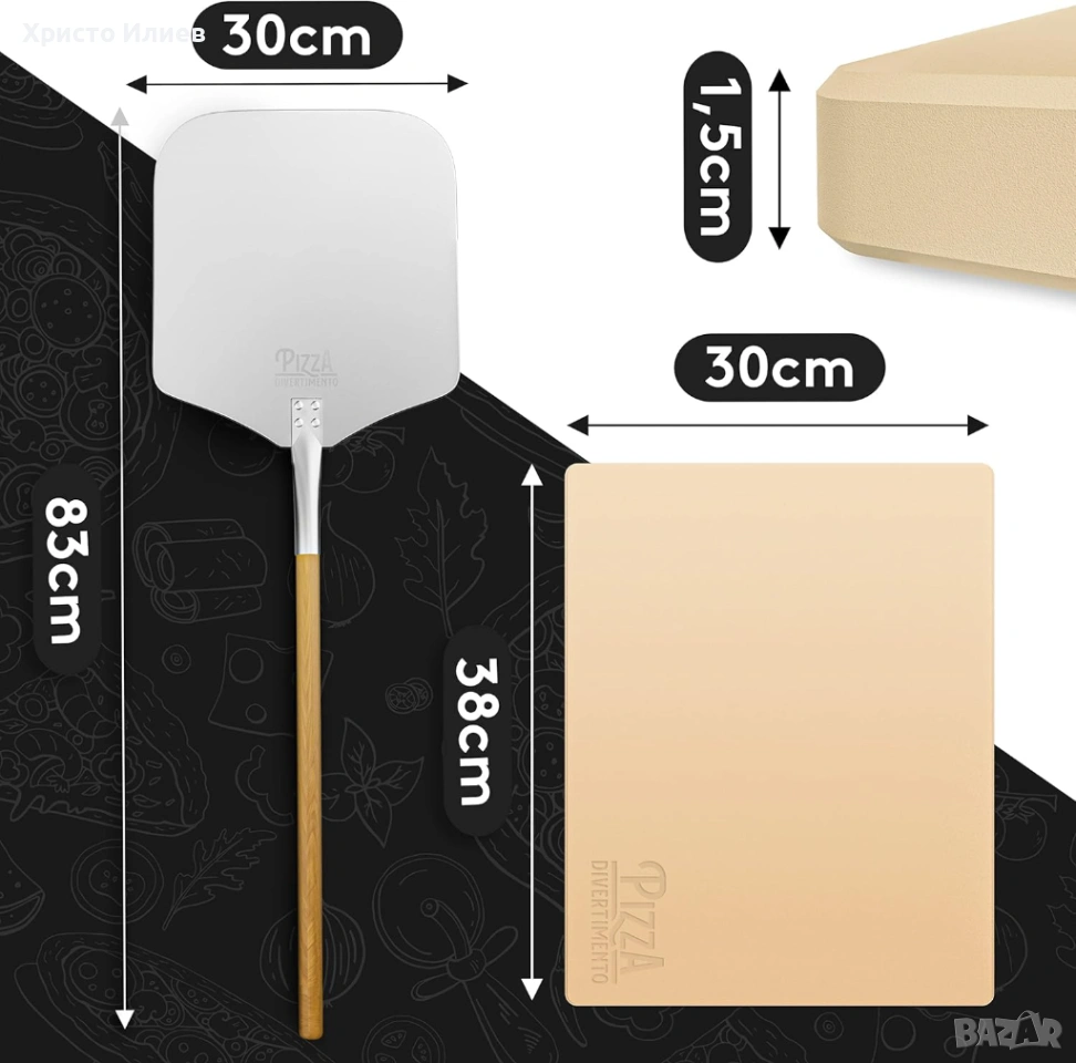 Размери: 38 x 30 см – предлага достатъчно място за големи пици или дори няколко по-малки пици едновременно.