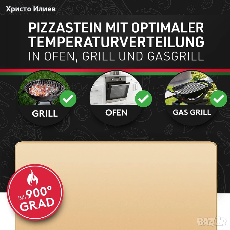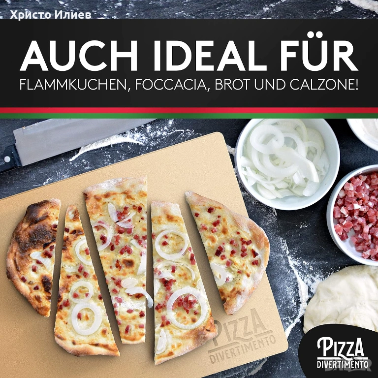 Универсална: Подходяща за фурни и газови скари, идеална за пица, хляб, плосък хляб и други.