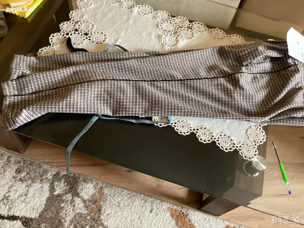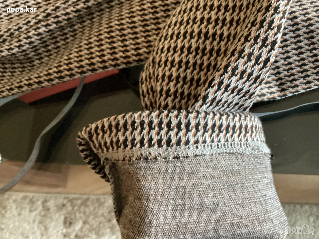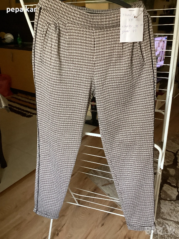Елегантен панталон с кантове,плътно трико!топлещ с чупки от пред и джобове. Висока талия с широк ластик. Стеснен в долната част. Раьмери талия 75 см нераьтегнат