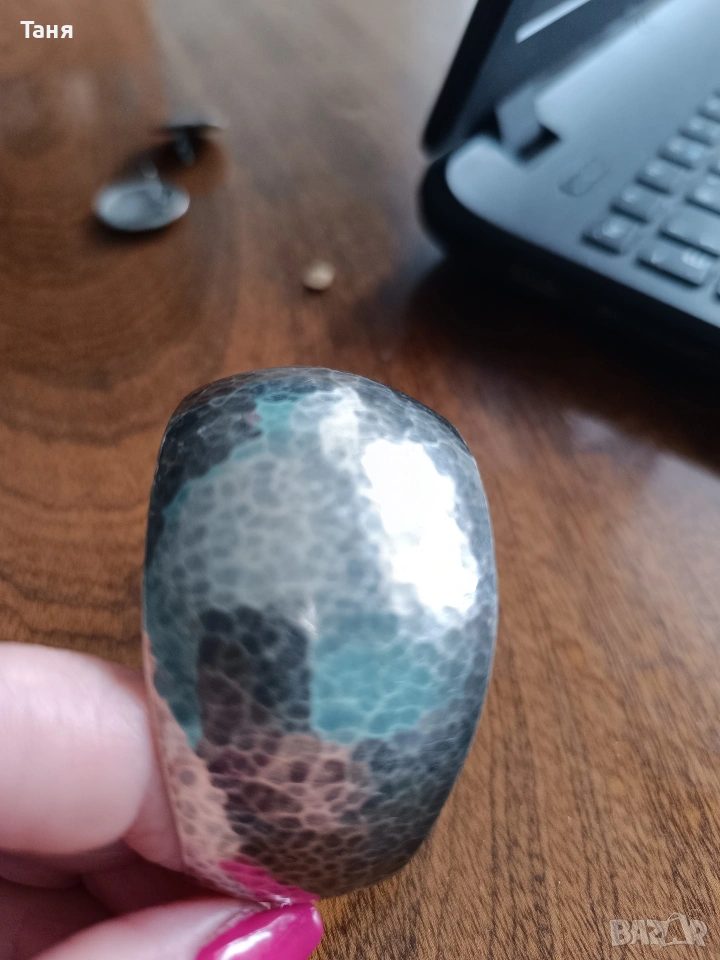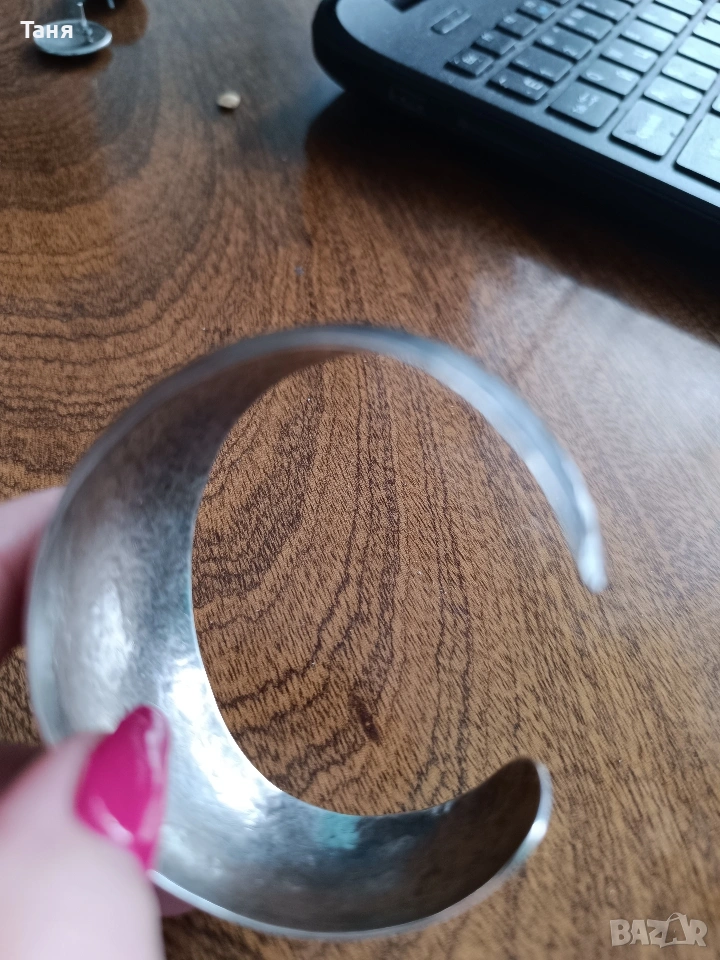 Много масивна сребърна гривна, ръчно кована.Гривната е отворена.
