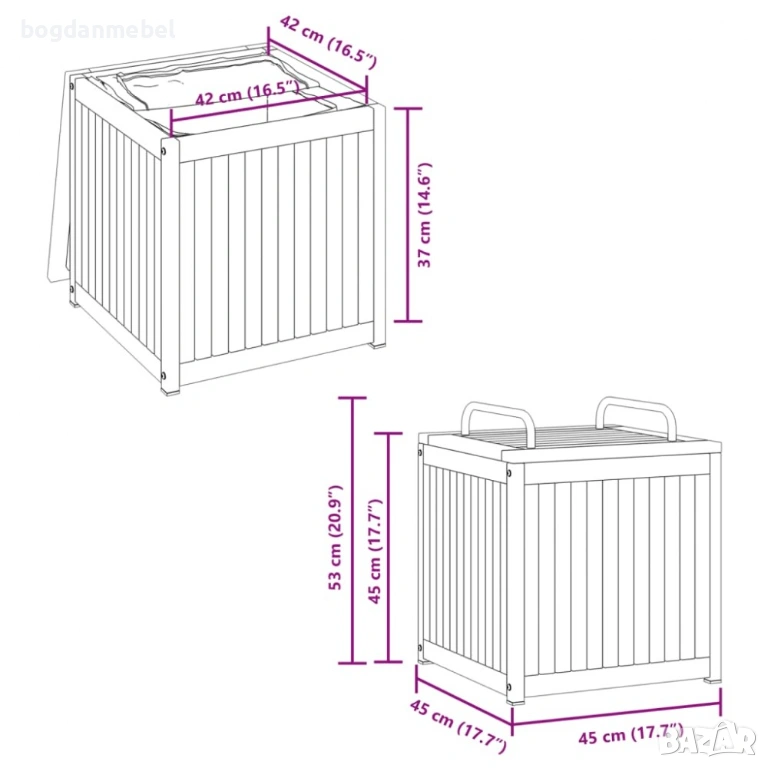 Вътрешни размери: 42 x 42 x 37 см (Ш x Д x В)