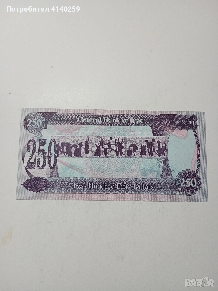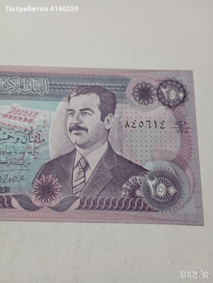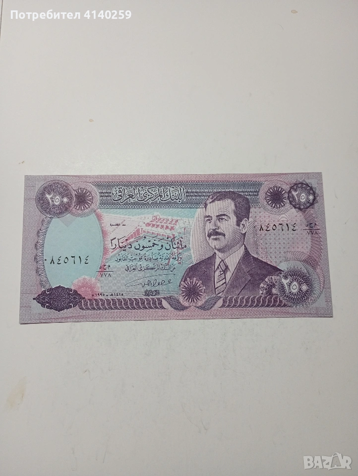 ИРАК БАНКНОТА 250 ДИНАРА 1995 Г СЪСТОЯНИЕ НОВО ПОЛУЧАВАТЕ СНИМАНАТА БАНКНОТА РАЗГЛЕДАЙТЕ ДРУГИТЕ МИ ОБЯВИ ДА КОМБИНИРАТЕ ДОСТАВКА ЕКОНТ ЗА ВАРНА ЛИЧНО