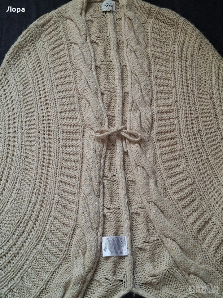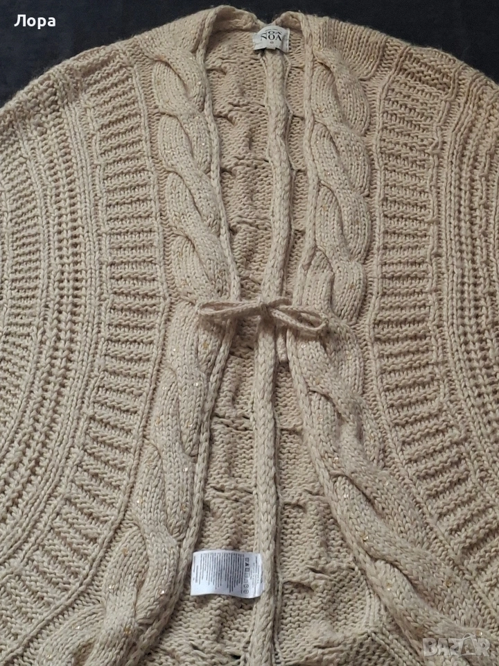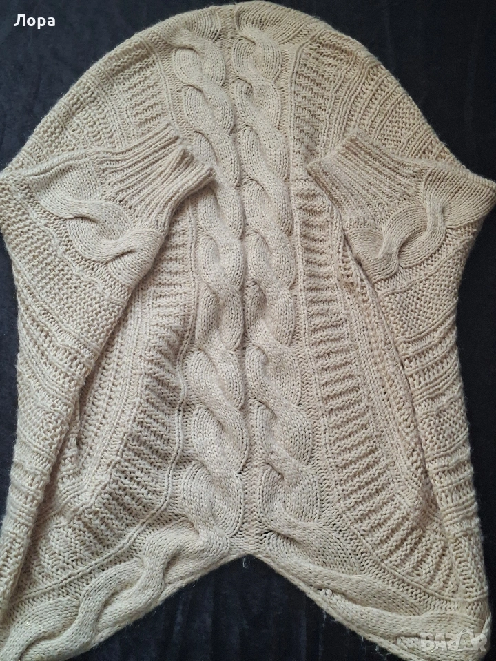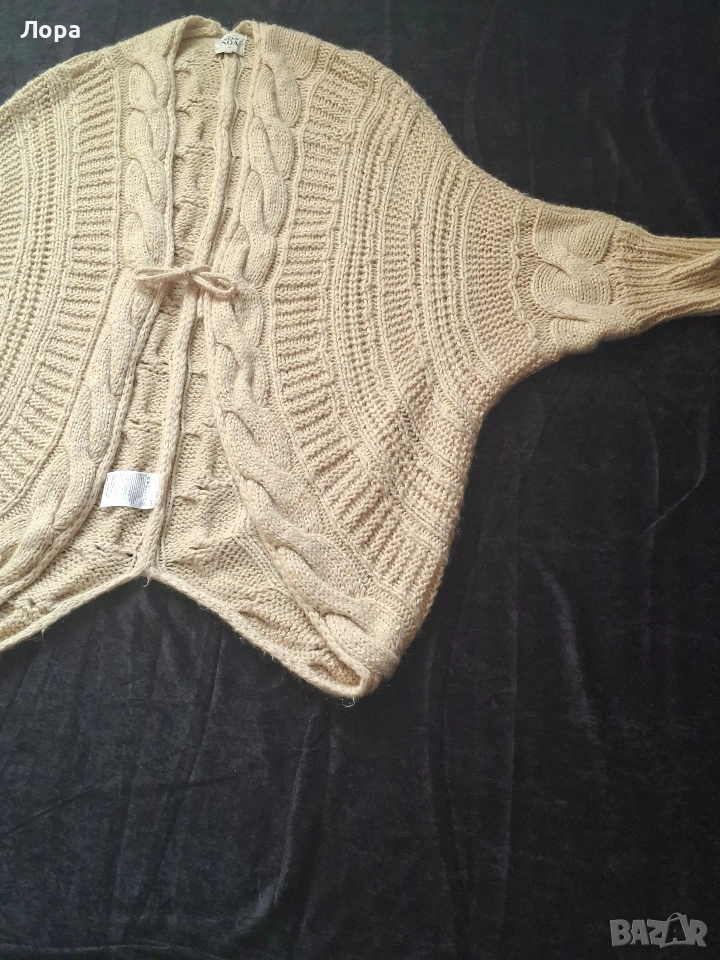 Дамска жилетка в много красива плетка.Натурален цвят. Размера е универсален. Широка с паднал ръкав . Дължина на жилетката 100 см. Подходяща за пролет и есен. Няма забележки. Изпращам с опция преглед и тест по Еконт.