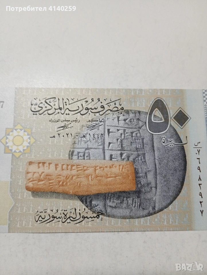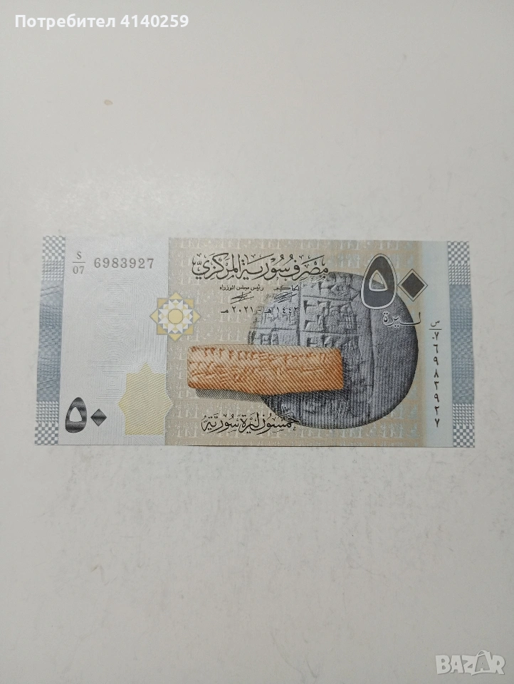 СИРИЯ БАНКНОТА 50 ЛИРИ 2009 Г СЪСТОЯНИЕ НОВО ПОЛУЧАВАТЕ СНИМАНАТА БАНКНОТА РАЗГЛЕДАЙТЕ ДРУГИТЕ МИ ОБЯВИ ДА КОМБИНИРАТЕ ДОСТАВКА ЕКОНТ ЗА ВАРНА ЛИЧНО