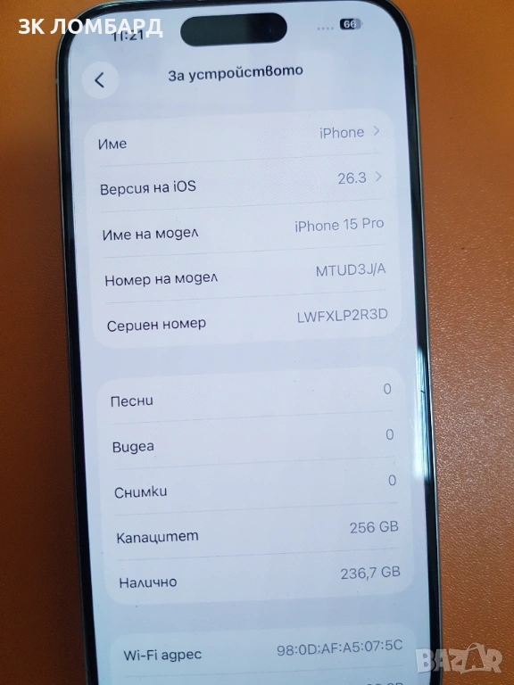 Apple iPhone 15 Pro 256GB → Обява 53590356