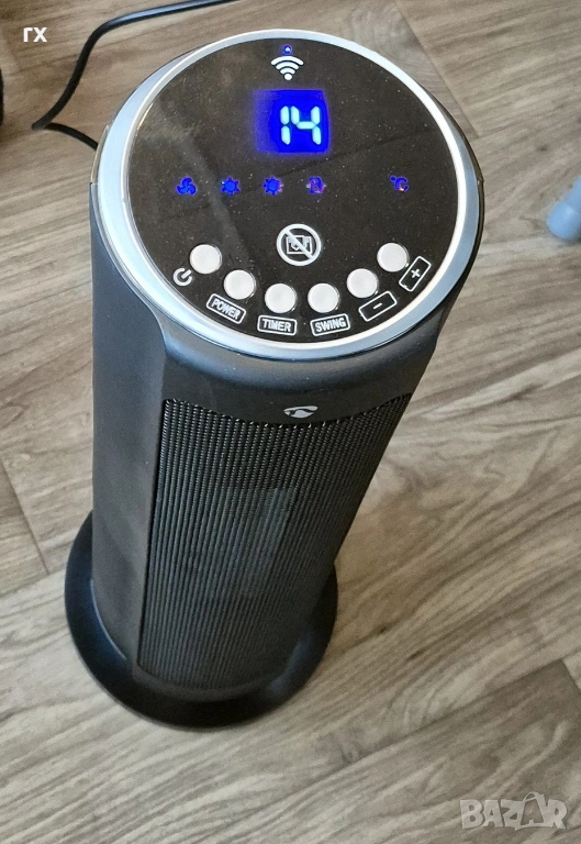 стилна и мощна керамична кула-вентилатор Nedis Wi-Fi Smart Fan Heater. Уредът е използван съвсем малко, в отлично състояние е и работи безупречно. Изключително удобна за бързо затопляне на стаи.