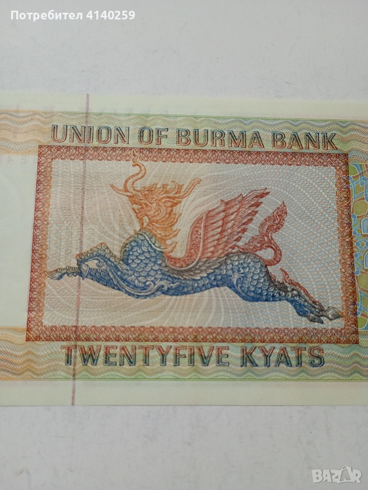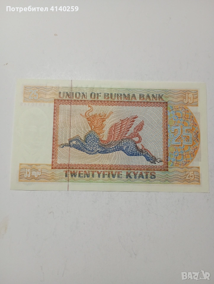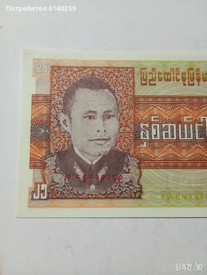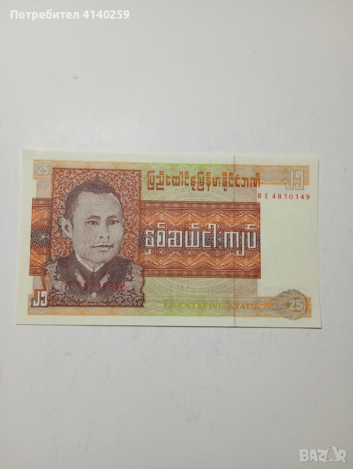 БИРМА БАНКНОТА 25 КЯТА 1972 Г РЯДКА СЪСТОЯНИЕ НОВО ПОЛУЧАВАТЕ СНИМАНАТА БАНКНОТА РАЗГЛЕДАЙТЕ ДРУГИТЕ МИ ОБЯВИ ДА КОМБИНИРАТЕ ДОСТАВКА ЕКОНТ ЗА ВАРНА ЛИЧНО