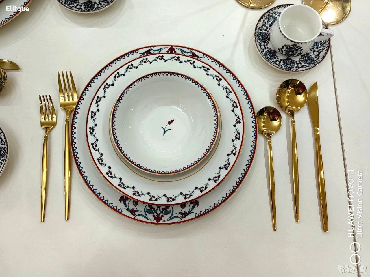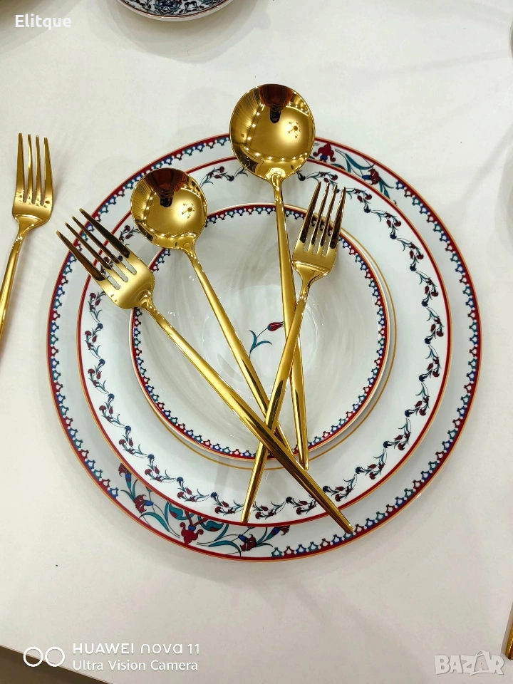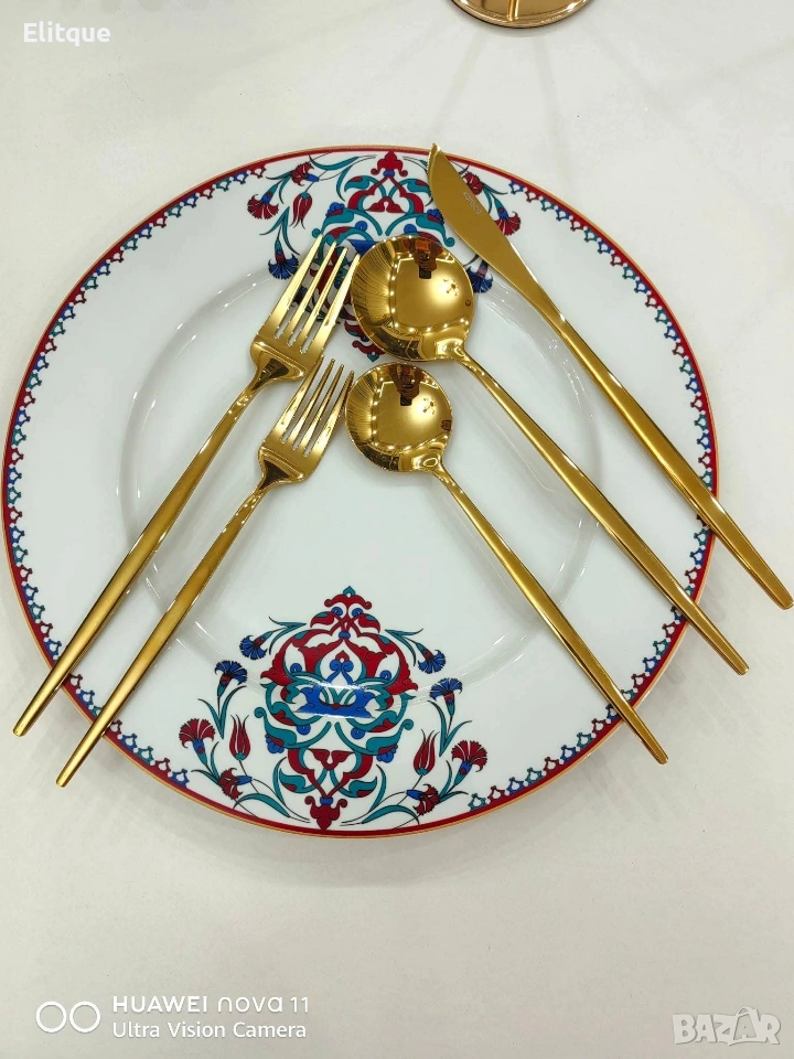 Комплект прибори за хранене – 24 части, златист цвят с магнитна кутия Добавете лукс и стил към всяка трапеза! 🍽️ Този комплект от 24 части в елегантен златист цвят е идеален както за ежедневна употреба, така и за специални поводи. 📦 Комплектът включва (за 6 души): 6 х ножове – 22 см х 1,5 см 6 х вилици – 22,5 см х 2,7 см 6 х супени лъжици – 22 см х 5 см 6 х десертни лъжички – 13 см х 3 см 🛠 Характеристики: Материал: Неръждаема стомана Цвят: Златист Брой части: 24 Опаковка: Луксозна магнитна кутия Поддръжка: Лесно измиване, устойчиви на честа употреба 💎 Предимства: ✔️ Модерен и елегантен дизайн ✔️ Подходящ за подарък ✔️ Издръжливи и устойчиви ✔️ Перфектни за официални вечери и празнични събития 🚚 Доставка с Ekont до 3 работни дни ✔️ Опция преглед преди плащане Превърнете всяко хранене в изискано изживяване. 🍷✨