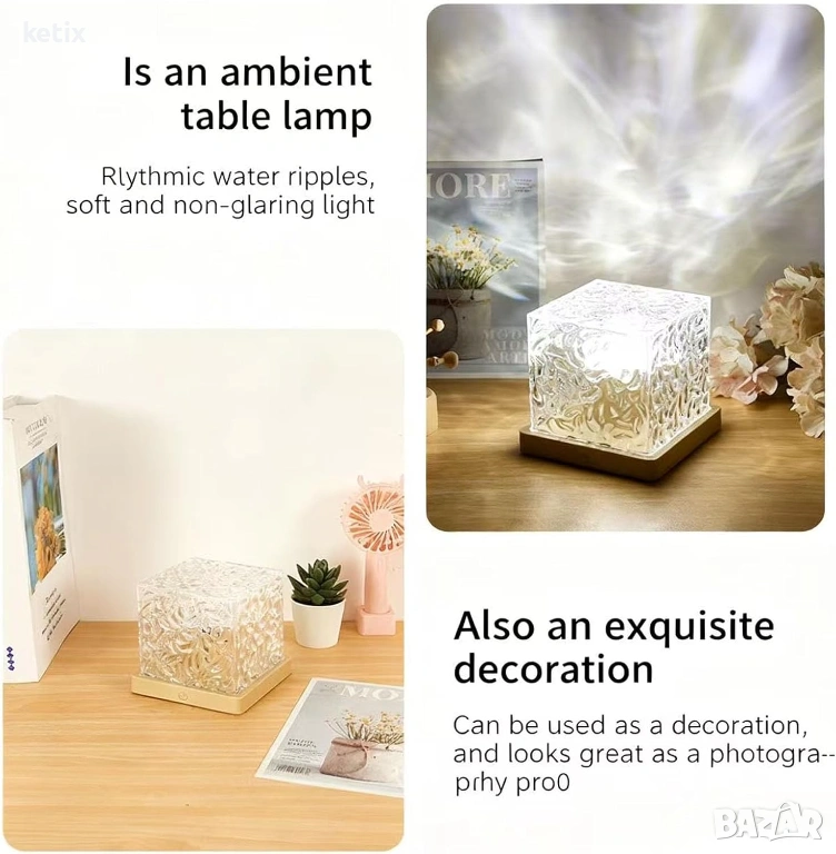 Персонализируемо осветление и контрол на яркостта: Проектор Aurora Dreamscape, Регулирайте атмосферата с три нива на яркост и различни режими на прожектиране на този иновативен светлинен проектор, 3D Ripple Romantic Ambient Lighting