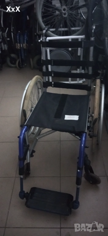 Алуминиева инвалидна количка.Количката е с много опции за настройка.Бързо свалящи гуми,свалящи степенки,повдигащ гръб.Широчина на седалката 38см.