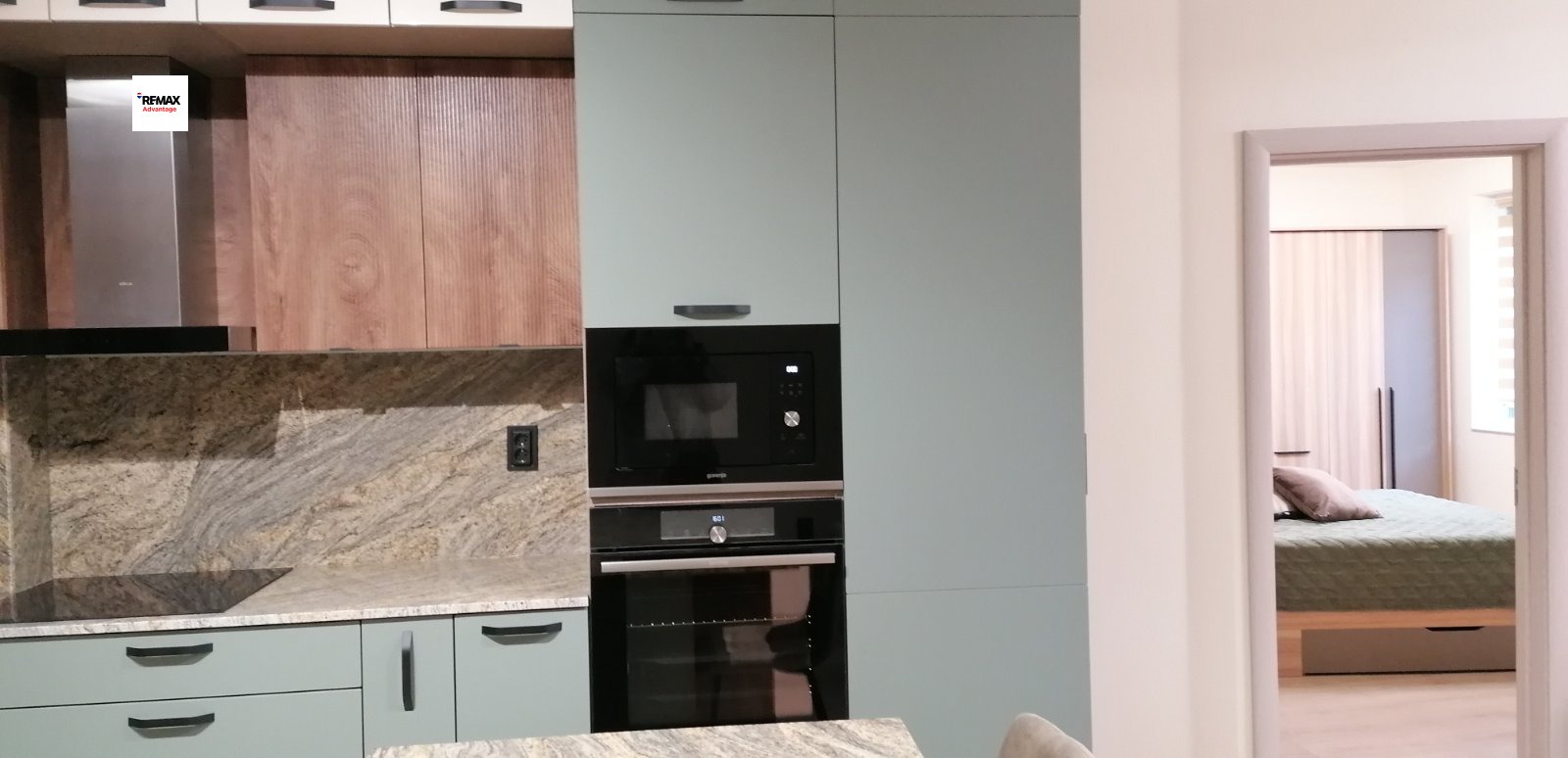 Апартаментът е обзаведен с модерни мебели и техника висок клас. Разполага с два климатика, телевизор, каменни плотове в кухнята и съдомиялна машина, щори с дистанционно управление.