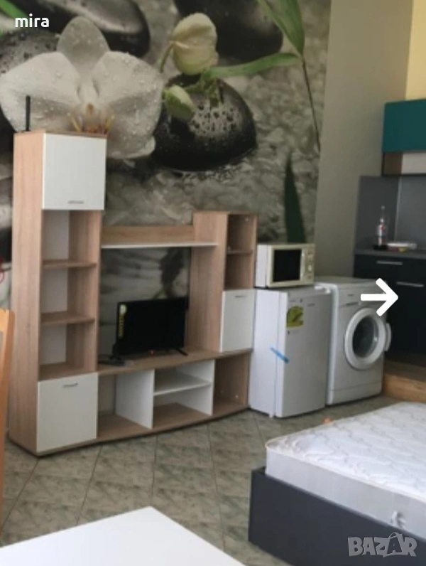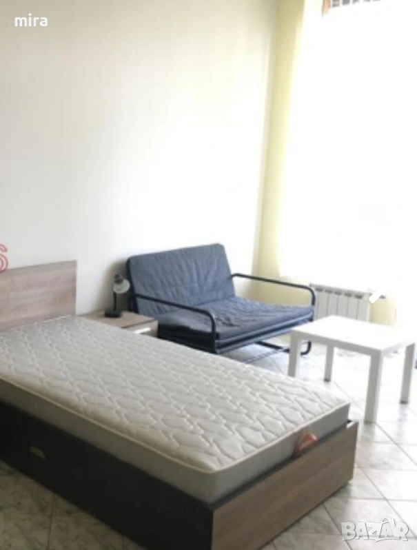Студио, Люлин 10 до метро Западен парк, партерно, 39 квадрата точно на 200 м. от линия 1 на метрото /летище софия, бизнес парк/, метростанция западен парк , много магазини и кафенета наоколо, пазар, МЕГА мол, свободно паркиране, наблизо има и охраняем паркинг. Жилището е еднопространствено със санитарен възел и мокро помещение, чиста площ 32 м2 + входен коридор, с изглед към поддържана паркова междублокова площ, обособен кухненски бокс, дневна и спалня . Обновено и напълно обзаведено с нови уреди и мебели, теракот и фаянс, алуминиеви дограми, маркова санитария, окабелено за СОТ и интернет,ефирна телевизия 11 канала. Кооперацията е ново строителство 2009 г. с ТЕЦ на индивидуални топломери, студиото е вътрешно с югоизточно изложение, отопляеми съседи. Легло персон и половина, двойка диван модел ИКЕА при нужда разгъваем. Витрината е с армирана стабилна ролетна решетка отвън и вътрешни щори. Дава се дългосрочно минимум за една година, месечният наем е 220 E , сметките - по фактури, депозитът е 300 E връща се след оглед при напускане и изчистване на сметките, но не и ако по-рано от 1 година. Жилището е подходящо за сам или двойка тихи, грижовни наематели. Само за частни лица.