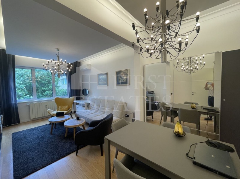 First Estates представя на Вашето внимание този разкошен, напълно реновиран тристаен апартамент със страхотна локация. Апартаментът е на 2-ри етаж над партер в добре поддържана стара сграда без асансьор.