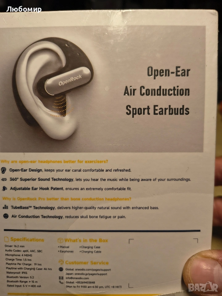 Слушалките OpenRock Pro с отворени уши съчетават аудио с висока прецизност с революционен комфорт и дизайн. Снабдени с мощен динамичен драйвер и поддържащи до 576 Kbps aptX аудио с висока разделителна способност, тези слушалки осигуряват ярък звук, който слушалките с костна проводимост не могат да постигнат. Патентованата акустична технология TubeBass подобрява баса, предлагайки по-богато и дълбоко звуково изживяване.High-Fidelity аудио с TubeBass Tech: Динамичният драйвер и aptX аудио с висока разделителна способност осигуряват ярък, висококачествен звук, докато технологията TubeBass усилва баса за по-дълбоко и по-богато изживяване.