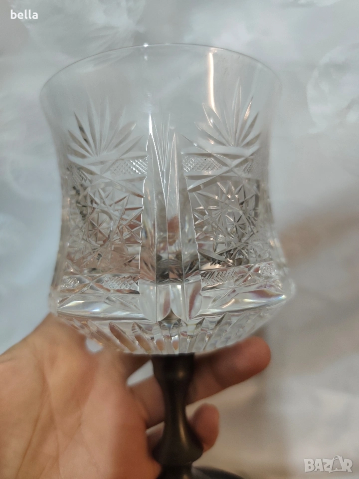 Антикварна чаша висококачествен калай (Pewter) и кристал