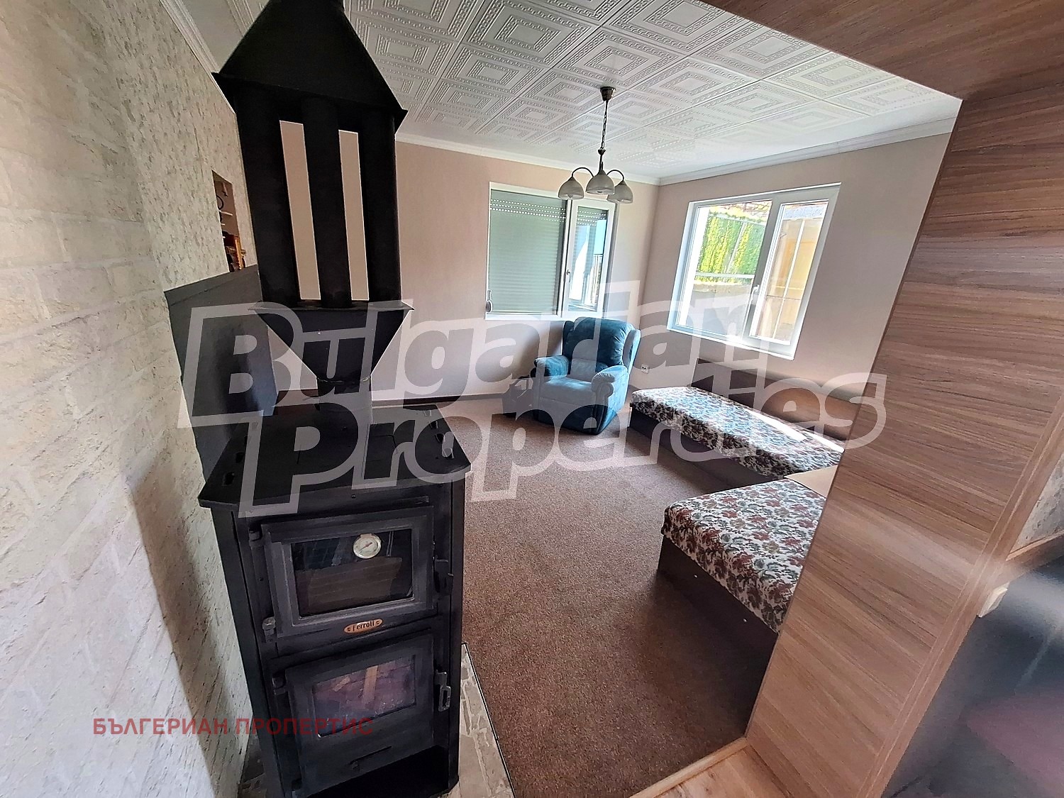 Кухнята е оборудвана с нови уреди: индукционен котлон, фурна, съдомиялна машина, изпускателна вентилация, хладилник. Пълното обзавеждане и оборудване може да разгледате на снимките. Имотът е завършен с нови трикамерни прозорци с щори и масивна входна врата. Отоплението на къщата е с печка камина 10 kW. В банята има инфрачервен панел за пестене на топлина.