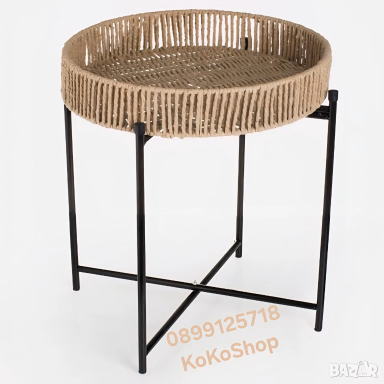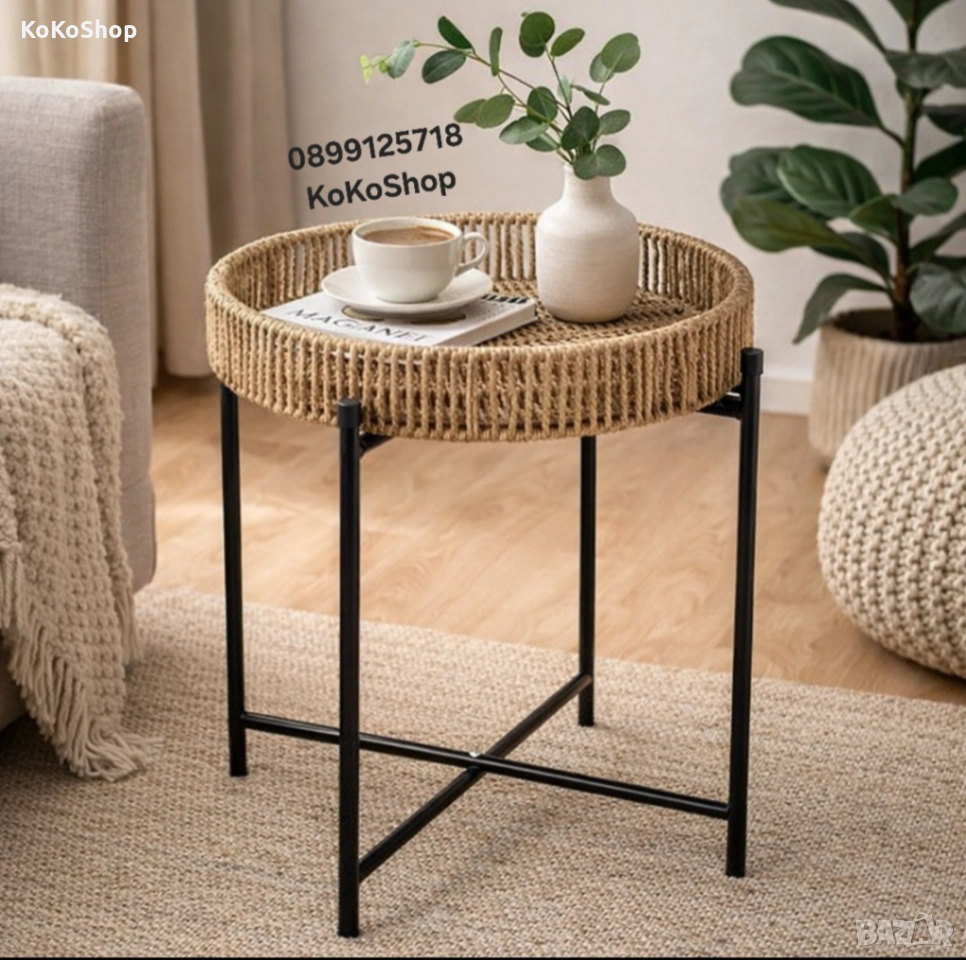 помощна маса, масичка, маса за хол, кръгла маса, бохо маса, скандинавски стил, маса от юта, декоративна маса, малка маса, интериор, мебели