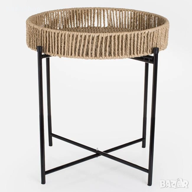 помощна маса, с интересен плот от платено въже и стабилна черна стойка.