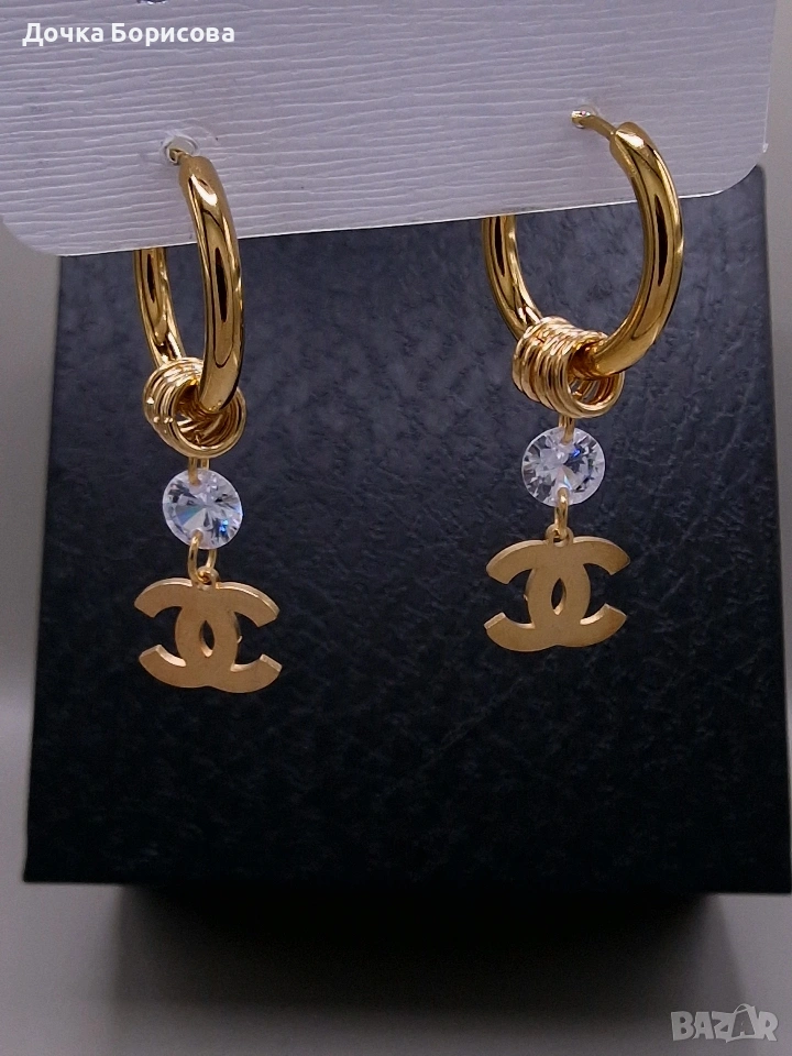 Обеци обръч с висулка „CC“ – с позлата → Обява 53591601