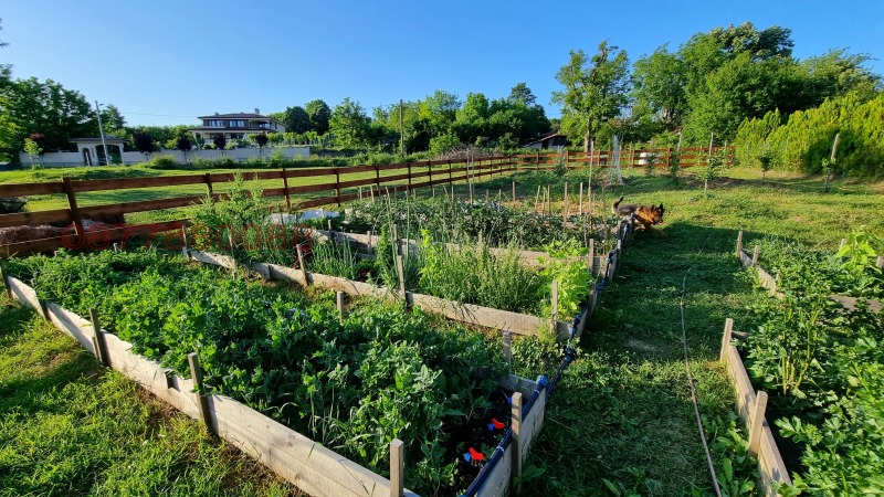 Огромен 2000 кв.м. двор с десетки дръвчета и жив плет. Автоматизирано напояване. Биологично чиста градина с повдигнати лехи, овошки, автоматизирана система напояване, къщичка, дървено-стъклена оранжерия;