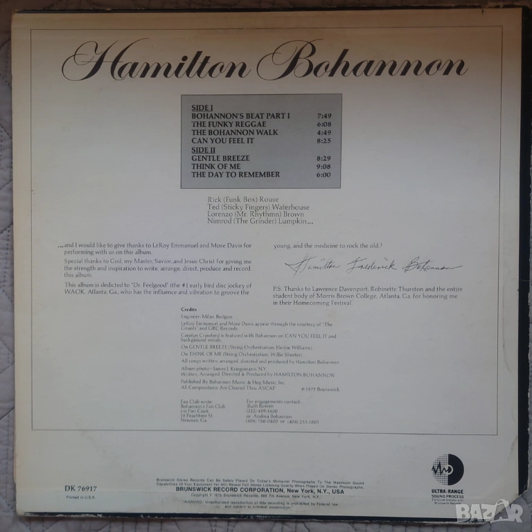Грамофонна плоча на Hamilton Bohannon – Bohannon. USA LP в много добро състояние VG на плочата и G+ на обложката. 1975 г. Funk, Disco.