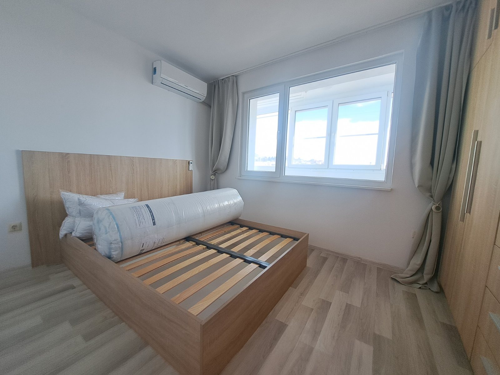 ИМОТИ ПРЕМИЕР Ви предлага под наем ЧИСТО НОВ двустаен апартамент в района на кв. Левски, разполагащ с паркинг пред сградата. Имотът се намира на висок етаж, откъдето има МОРСКА ПАНОРАМА. Много слънчево и топло жилище, състоящо се от голям коридор, дневен тракт с кухненски бокс, спалня, килер с перално помещение, баня с тоалет и просторна остъклена тераса. Предлага се напълно обзаведено и оборудвано с чисто нови мебели и електроуреди висок клас! Перфектно жилище, очакващо своите Първи наематели! За повече информация позвънете на посочените телефонни номера и цитирайте Код на обявата 334574