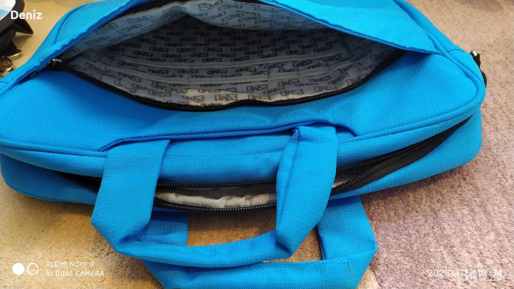 Чантата е неразличима от нова. Може да се ползва за лаптоп/ нетбук/ нотбук или документи. Цветът ѝ е тюркоаз.