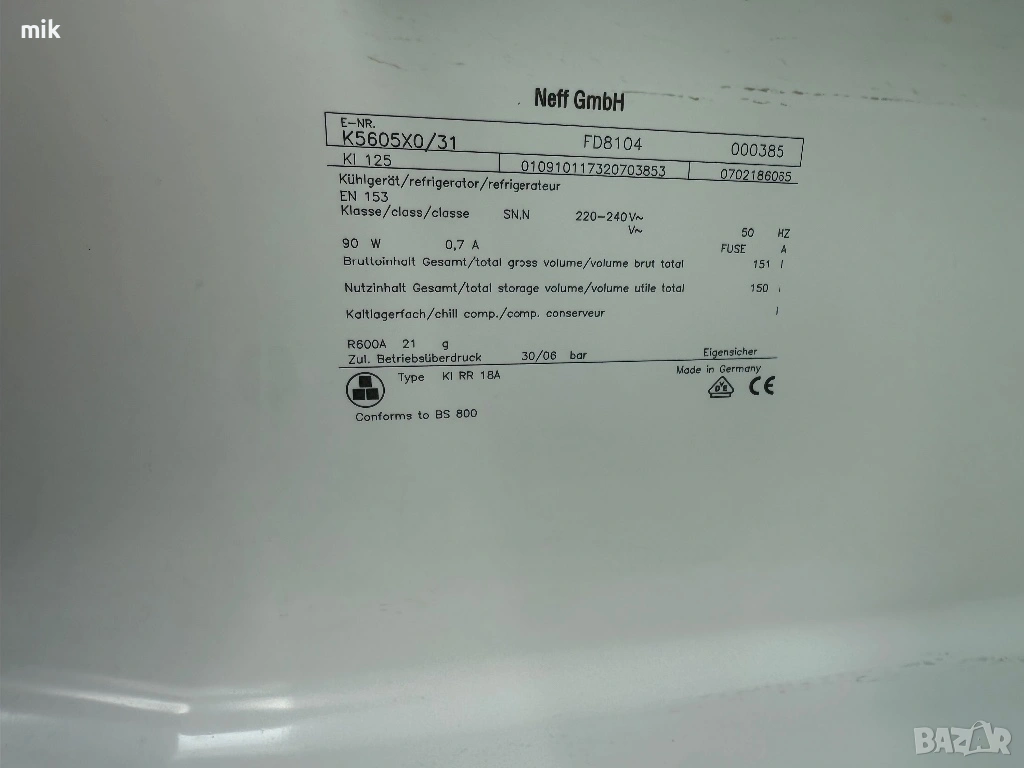 Малък хладилник за вграждане Neff - Bosch. Марката Neff е по-високото качество на марката Bosch. Закупен от Германия. Минал технически преглед. Дезинфекциран и готов за употреба