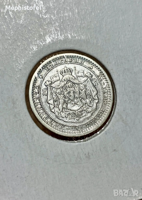 Стара сребърна българска монета от втората половина на XIX век - сребро проба 0.835, каталожно тегло 2.5 грaма, 18 мм диаметър, назъбен гурт. Първата сребърна монета с такъв номинал, отсечена от новоформираната българска държава.