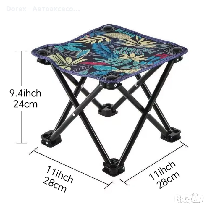 Практичен и компактен сгъваем стол, удобен за носене и съхранение. Подходящ за къмпинг, пикник, риболов, плаж и всякакви дейности на открито.