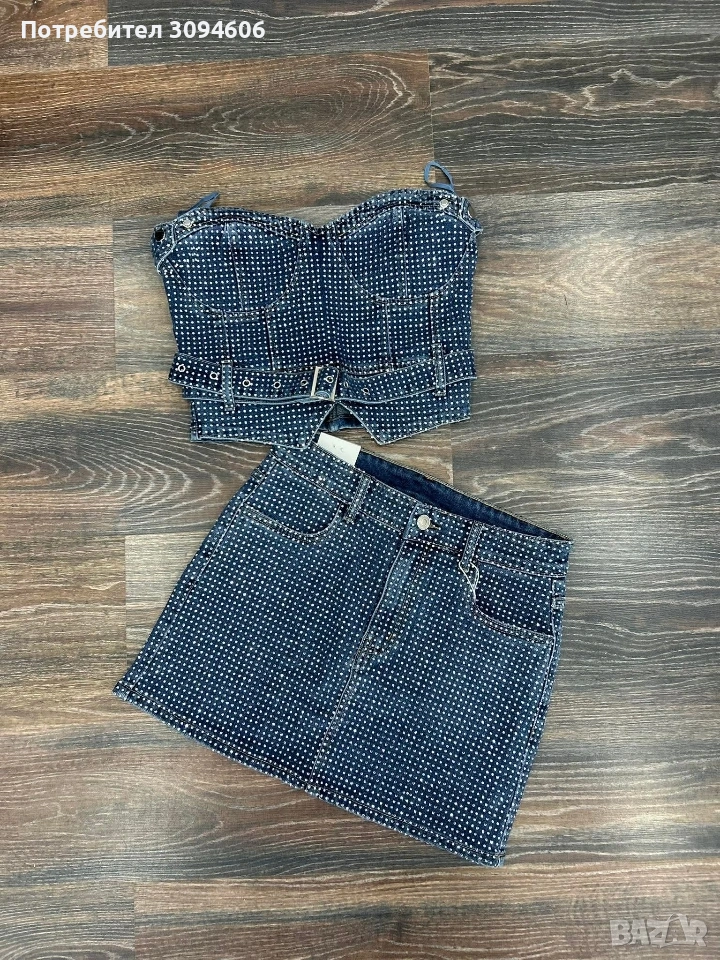 Страхотен дамски сет Бюстие с къса пола в деним ХС С М Л До изчерпване