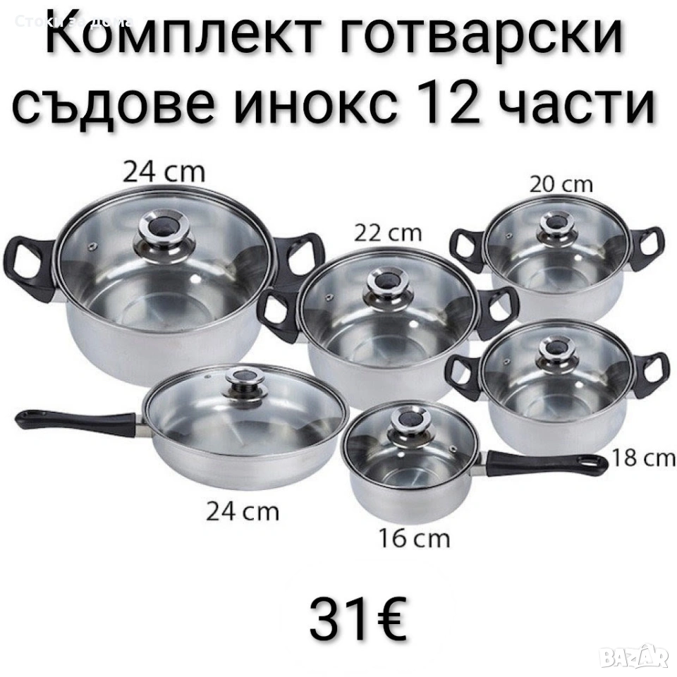 Комплект готварски съдове от инокс 12 части: 5 тенджери, тиган и стъклени капаци (16-24см)