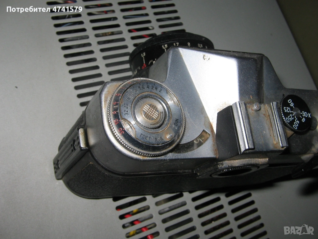 Доста запазен и се ползва колкото и да ви е странно , да прашасал е но е така като е без калъф и се таралянка по планини !Обектива е Индустар 3,5/50 доста успешно копие на Тесар "Орловото око" Калъф няма !Може и светломера да не бачка щото е селенова клетка но ако го земете ще добавя един Ваймар Лукс !