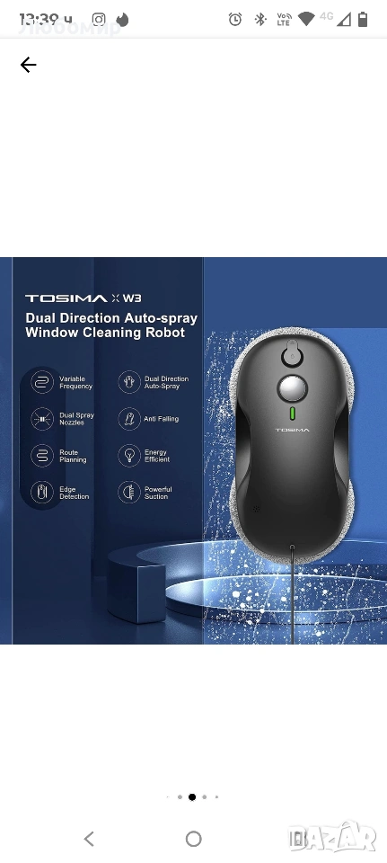 Tosima W3 3800PA Интелигентен робот за почистване на прозорци, автоматична функция за пръскане