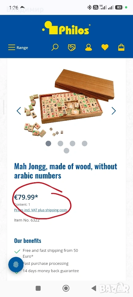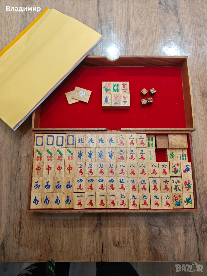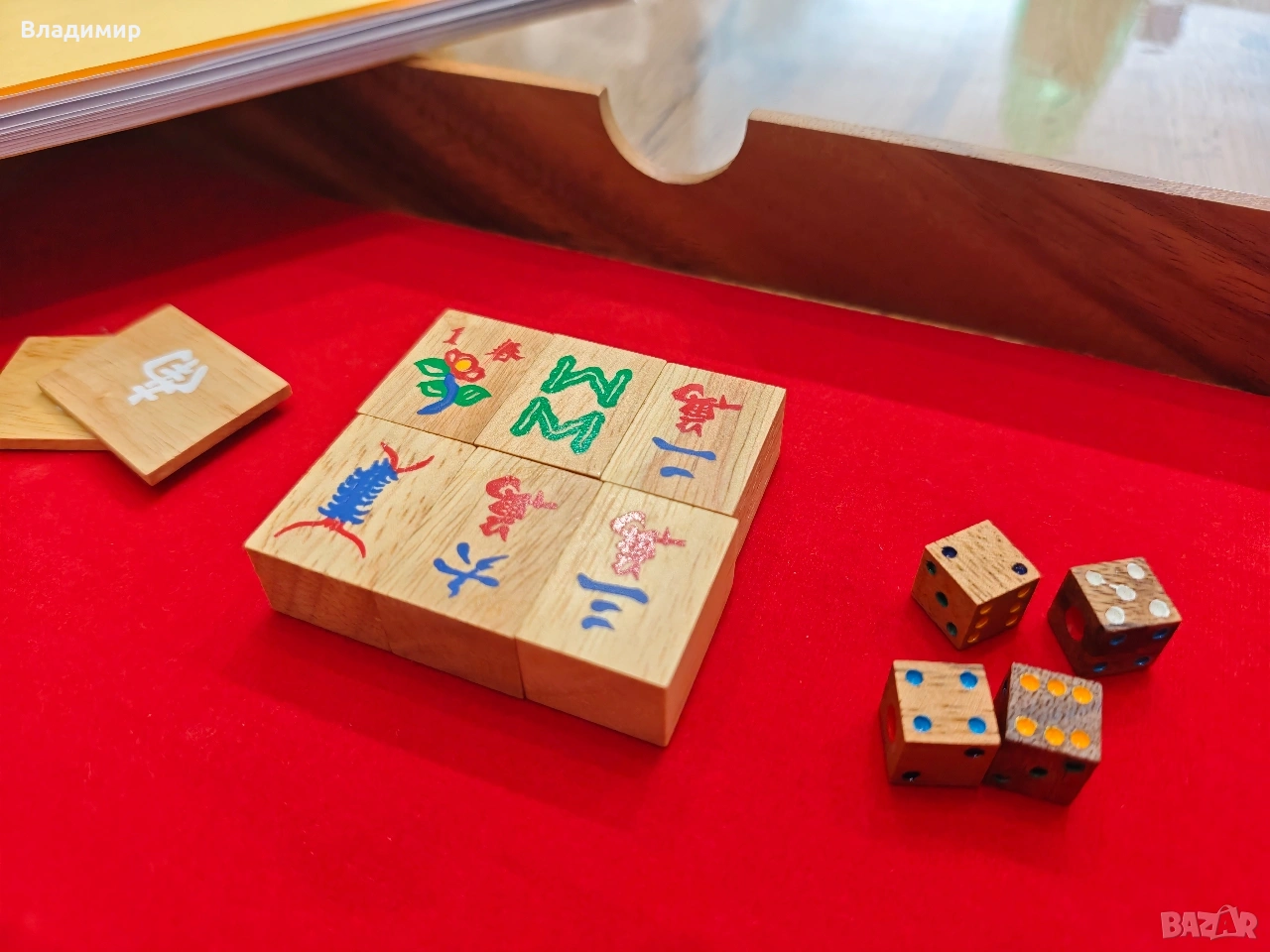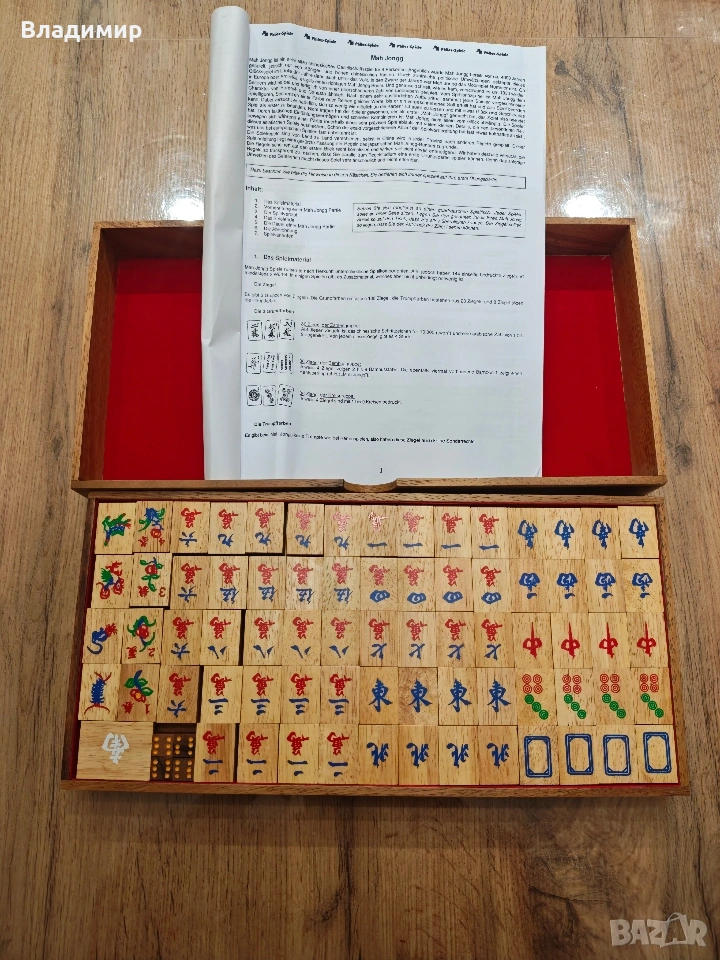 Продавам чисто нов, висококачествен комплект за класическата китайска игра Mah-Jongg на немската марка Philos. Този комплект е истинско бижу за ценители, отличаващ се с изключителна изработка и естетика. Основни характеристики: Материал: Пуловете и кутията са изработени от екзотично дърво Самена (Samena wood), известно със своята здравина и красива, топла текстура. Дизайн: Плочките са с автентичен облик – без арабски цифри, което запазва традиционния дух на играта. Гравюрите са прецизни и детайлни. Съдържание: Пълен комплект от 144 плочки (тухлички), зарчета и стилна дървена кутия за съхранение. Размери: Кутията е с размери 360 x 185 x 40 мм, което я прави удобна както за игра у дома, така и за пренасяне. Състояние: Комплектът е чисто нов, неизползван, подходящ и за подарък. Инструкции: Към комплекта е приложена книжка с инструкции на немски, френски и испански език. За Ваше удобство, при покупка мога да предоставя допълнително PDF файл с пълните правила на английски език. Mah-Jongg е игра на стратегия, концентрация и тактическо мислене, а изработката от дърво носи неповторимо усещане при допир до пръстите, което не може да се сравни с пластмасовите варианти. Моля разгледайте и другите ми обяви.