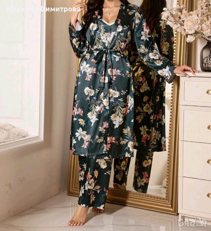 Дамска сатенена пижама от 3 части → Обява 53592401