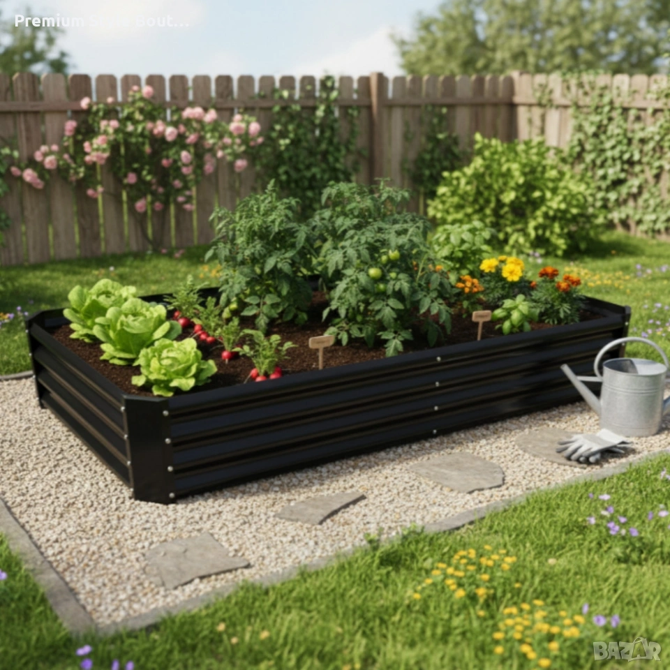 Технически характеристики на Леха за зеленчуци и цветя - елегантно решение за всяка градина - антрацит Данни и спецификации: Модел: Леха за зеленчуци и цветя Размери: 180 × 90 × 30 см (дължина × ширина × височина) Форма: Правоъгълна Цвят: Антрацит Материал: Поцинкована стомана с прахово покритие Приложения: Зеленчуци, билки, цветя, декоративни растения Монтаж: Включени крепежни елементи за бърз и сигурен монтаж