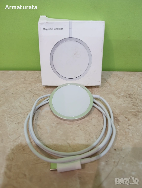 Продавам магнитно безжично зарядно (Magnetic Charger) с мощност до 15W.