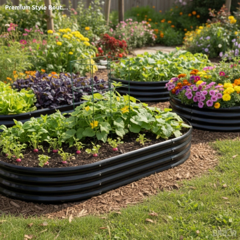 Технически характеристики на Овална леха за зеленчуци и цветя - модерна форма и здрава конструкция Ключови спецификации: Размери: 240 × 120 × 30 см Форма: овална Цвят: антрацит Материал: поцинкована стомана, прахово боядисана Устойчивост: корозионна защита и повишена механична издръжливост Монтаж: бърз, без специални инструменти, с ясни инструкции