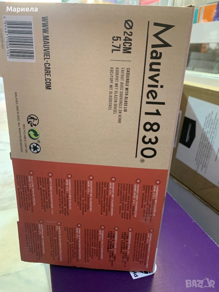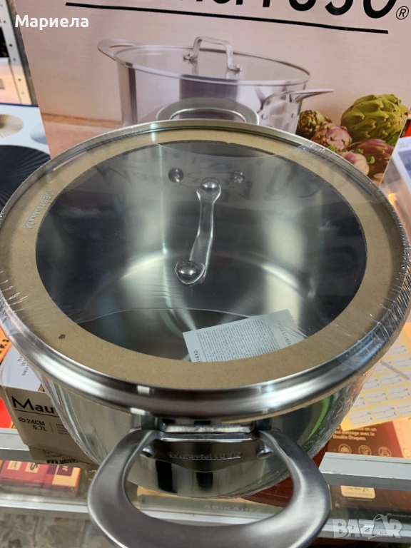 Тенджера MAUVIEL 1830, Инокс, 5.7л, Неръждаема стомана, Трислойна със стъклен капак