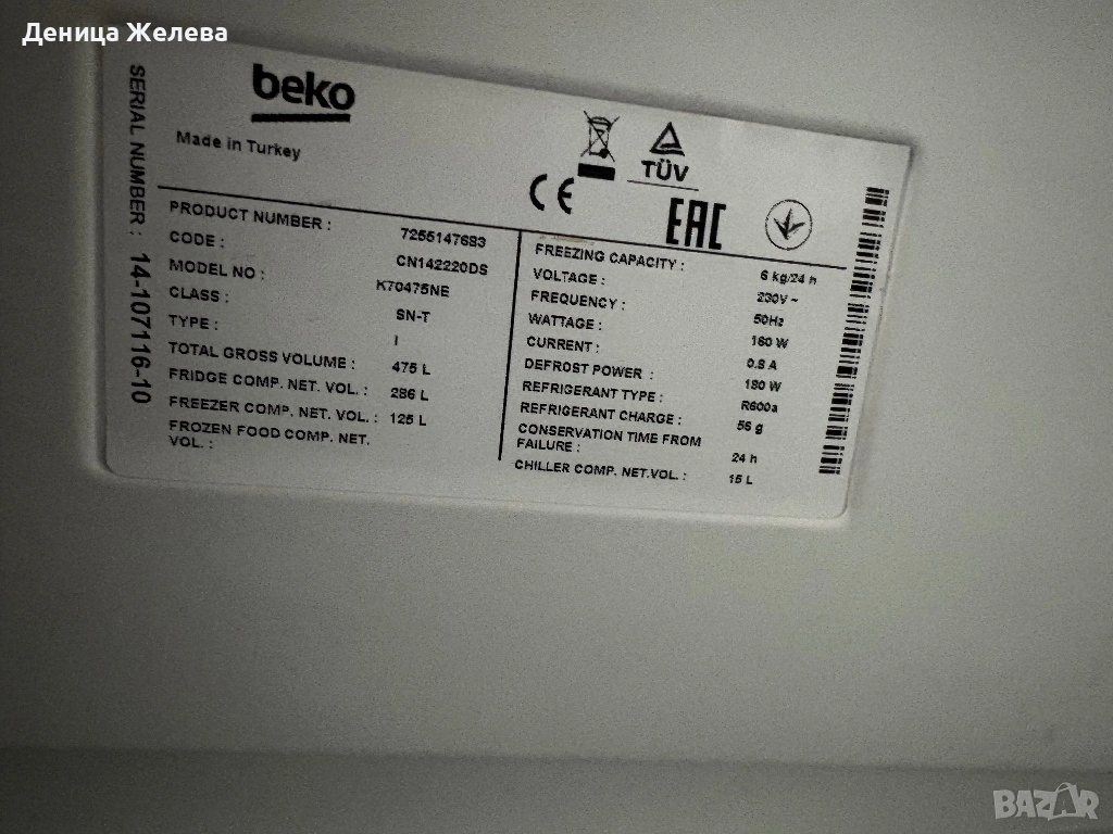 Продавам хладилник с фризер Beko → Обява 53592502