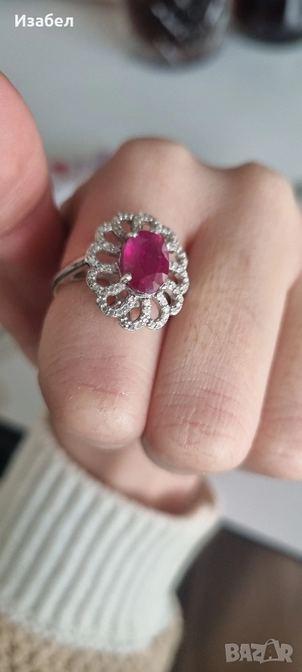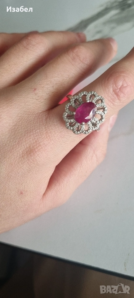 Представям ви този невероятен, сребърен пръстен с Рубин и диаманти, размер около 55-56.