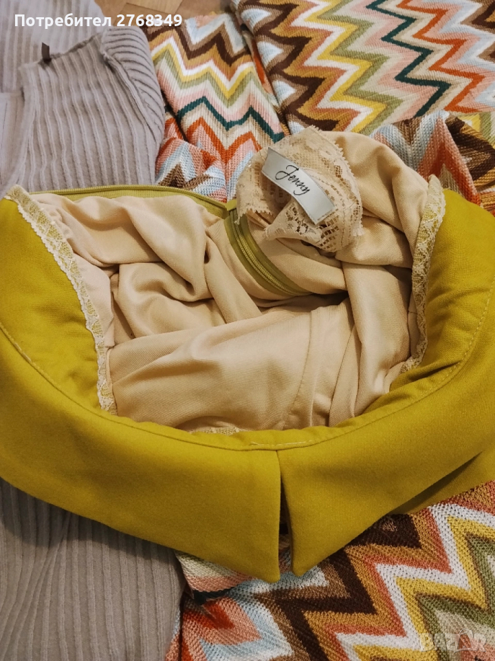 Елегантна дамска рокля с лек гол гръб в бежов цвят на марката Patrizia Pepe- размер S/M-100€ . Продавам пъстра рокля в лимонов цвят на марката Fenny ,размер М -100€ . Роклите са закупени само ,не са обличани ,защото се оказаха големи и нямаше как да ги върна ,защото съм махнала етикетите . Цените струват двойно повече ,от цената която съм обявила . Мога да направя коментар на цената