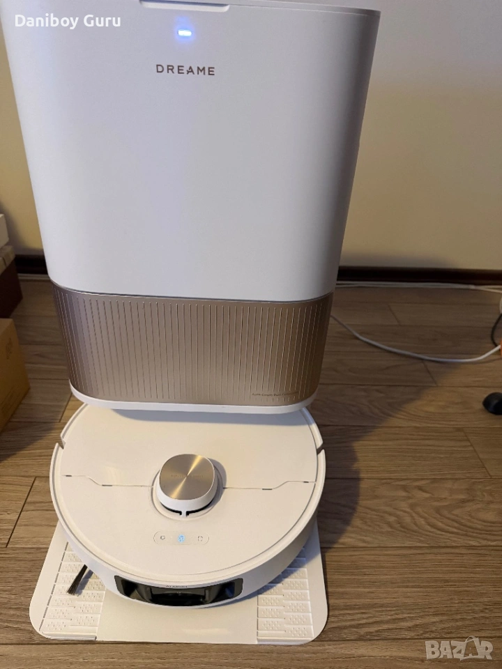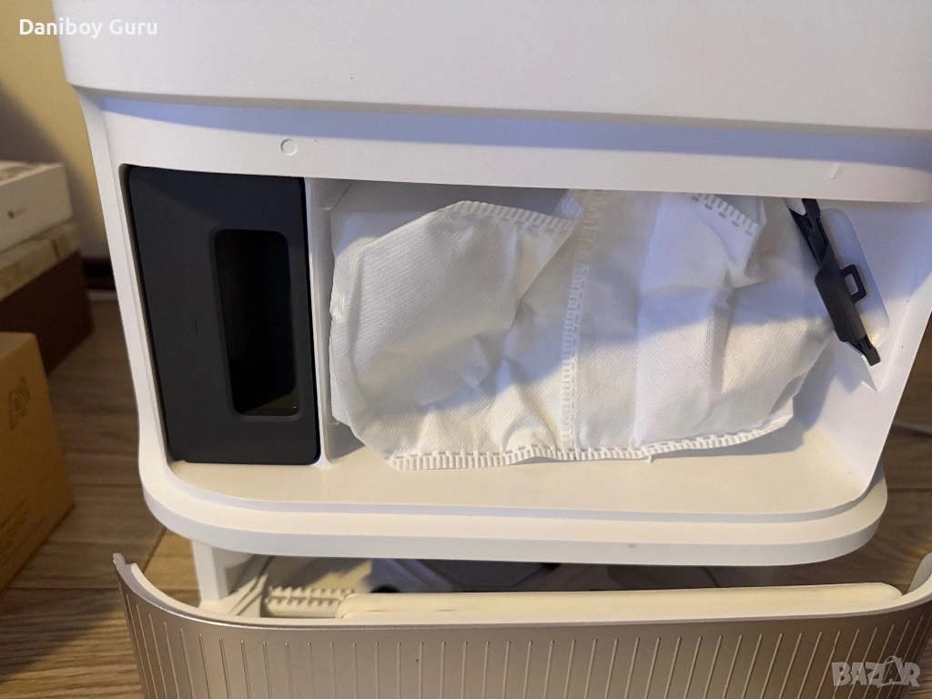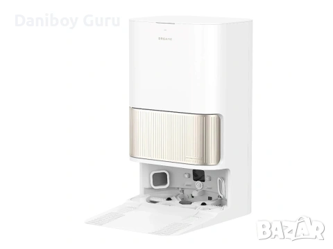 Докинг станцията използва гореща вода (65°C), за да дезинфекцира и почисти ефективно подложките на мопа от упорити петна, масло и мазнини.Роботът сам изхвърля събрания прах в торбичка в станцията, което осигурява до 100 дни употреба без нужда от вашата намеса.Станцията презарежда резервоара на робота с чиста вода, за да е винаги готов за миене.Основата на докинг станцията се почиства сама, за да предотврати натрупването на мръсотия и появата на неприятни миризми.